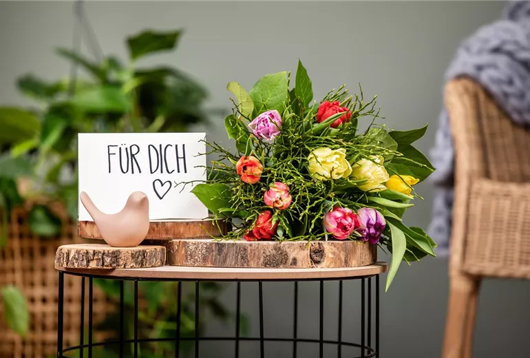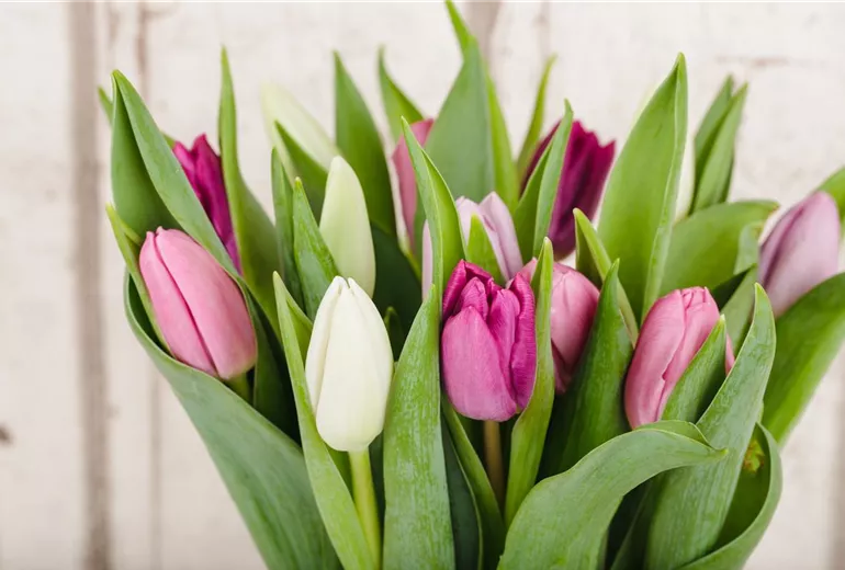 Die Haltbarkeit eines frischen Straußes wird insbesondere durch die Wahl der Vase beeinflusst. Hat diese eine ungünstige Form oder ist die Vase nicht richtig sauber, verabschieden sich die farbenfrohen Schnittblumen innerhalb weniger Tage. Ein schöner Frühlingsstrauß macht sich daher besonders gut in einer zylinderförmigen Vase, die genug Raum zum Blühen bietet und dennoch nicht zu aufdringlich wirkt.