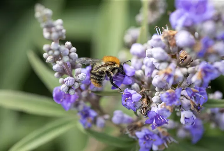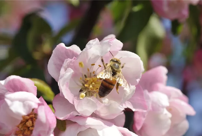 Kletterpflanzen sind hingegen Nahrungsquelle und Unterschlupf zugleich, sodass sich die Einbringung in den Garten sogar doppelt lohnt. Blauregen, Kletter-Hortensie und Kriechrose sind dabei aus Bienensicht besonders attraktiv.