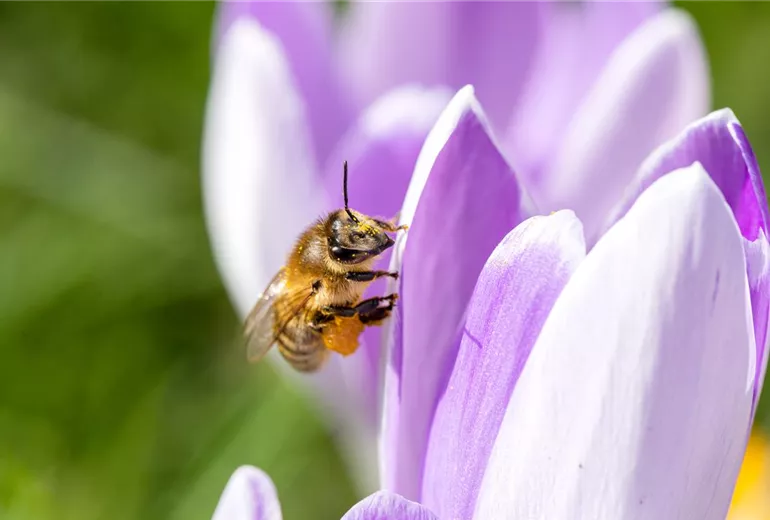 Zwiebelblumen, wie Schneeglöckchen, Tulpen oder Krokusse, sind wiederum sogenannte Frühblüher und stellen sicher, dass die Bienen bereits zu Jahresbeginn schnell an Nahrung kommen.