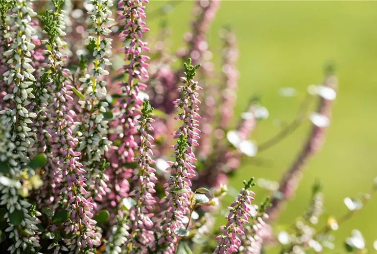 Die Heide ist schon seit Jahrhunderten bekannt und beliebt. Früher hat man die Zweige der Besenheide zusammengebunden und mit ihr gekehrt. So kam sie zu ihrem Namen. Besonders für Grabbepflanzungen wird die Heide im Herbst ausgewählt und eingesetzt, aber mehr und mehr findet sie Einzug in die Gärten. Das ist auch kein Wunder. Wenn im Herbst die Nächte lang werden und alles grau und neblig scheint, so leuchtet die Heide in rosa und violett bis in den Winter hinein. Grundsätzlich ist sie sehr anspruchslos und benötigt wenig Pflege. Und dabei ist sie ein wahrer Bienen- und Hummelmagnet zu einer Jahreszeit, in der viele Blumen schon verblüht sind.