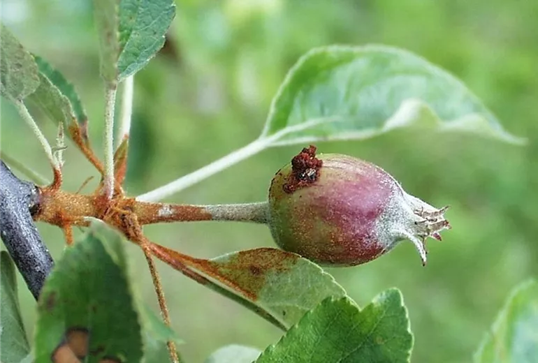 Birnen weisen, ähnlich wie beim Apfel, Bohrlöcher auf, die mit hervorquellenden braunen Kotkrümeln behaftet sind. Das Fruchtinnere ist von Fraßgängen durchzogen, die bis in das Kernhaus reichen. In ihnen lebt die bis 20 mm lange blassfleischfarbene Larve (Obstmade) des Apfelwicklers, eines unscheinbaren Kleinschmetterlings.