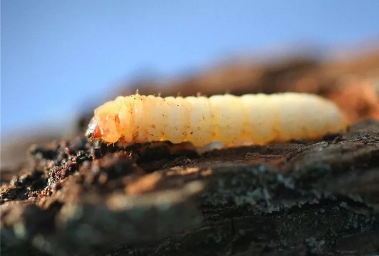 Der Birnbaumprachtkäfer ( Agrilus sinuatus ) tritt vor allem in sehr warmen Jahren auf. Die bis zu 10 mm langen Käfer legen im Juni ihre Eier in die Rinde. Die jungen Larven bohren sich sofort in die Rinde ein, wo sie im Laufe der nächsten Jahre die typischen Fraßgänge anlegen. Im dritten Jahr schlüpfen die fertigen Käfer im Frühling.