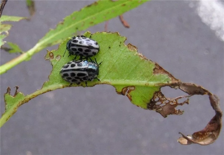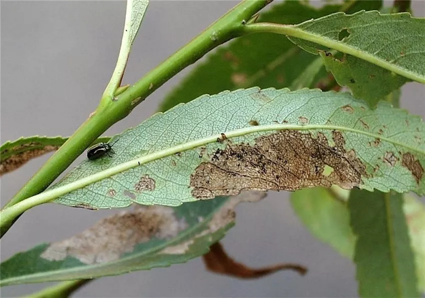 Im Frühjahr verursacht der so genannte Weidenblattfloh, ein kleiner metallisch glänzender Blattkäfer, Lochfraß an jungen Blättern.