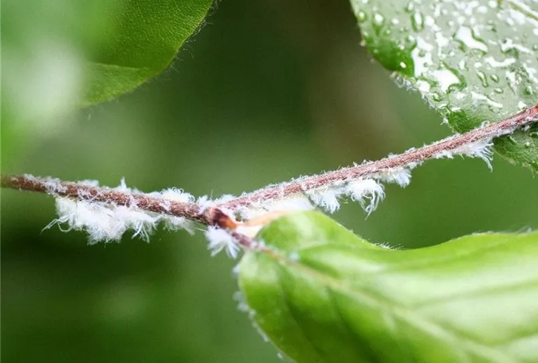 Die Buchenblattlaus (Phyllaphis fagi) wird wegen ihrer auffälligen Wachsausscheidungen auch als Buchenwolllaus bezeichnet. An Buchenhecken, besonders auffällig ist der Befall an rotlaubigen Buchen, kommt es durch die Saugtätigkeit der Tiere zu Wachstumsstockungen und Schäden an den Blättern.