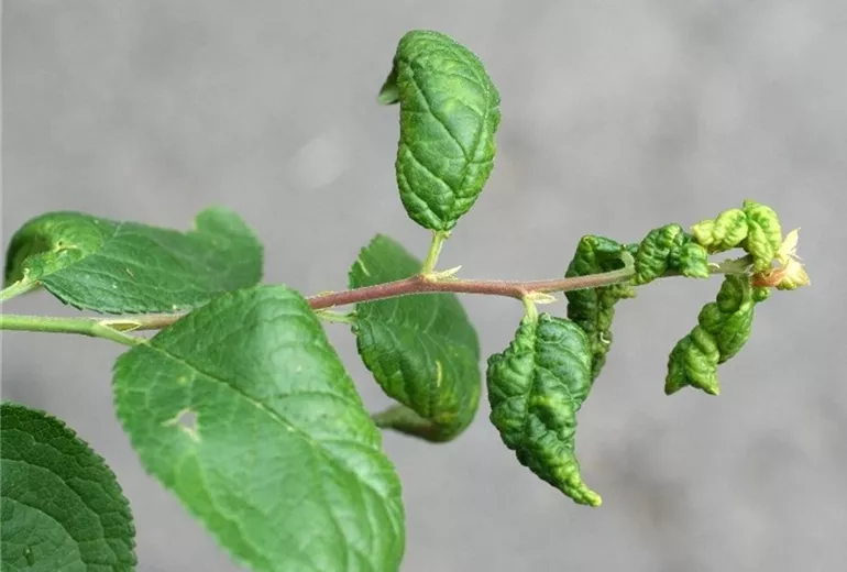 Normalerweise wird der Blattlausbefall erst bemerkt, wenn die Blätter sich stark krümmen und die typischen Triebstauchungen auftreten. Zu diesem Zeitpunkt (Mai/Juni) sind die Schäden bereits entstanden. Eine Bekämpfung wäre zu diesem späten Termin sinnlos. Schon zur Blütezeit und danach sind die jungen Blätter und Triebe auf Blattläuse zu untersuchen. Bei beginnendem Befall kann unmittelbar nach der Blüte mit den zugelassenen Präparaten behandelt werden.