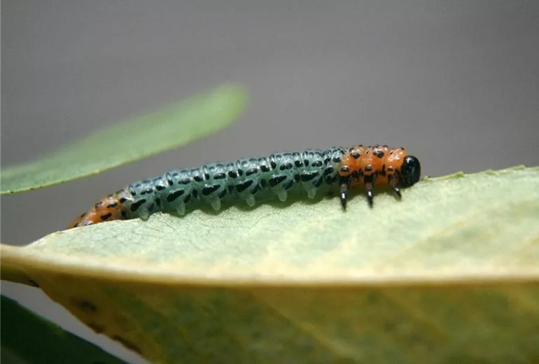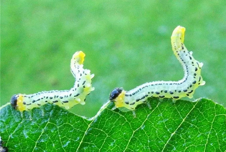 Blattwespenlarven können innerhalb kurzer Zeit Kahlfraß verursachen.