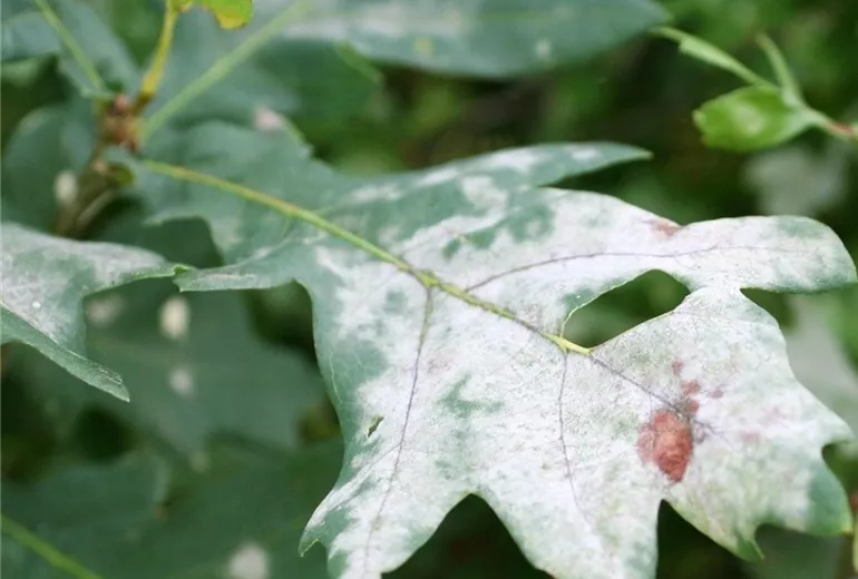 Der Echte Eichenmehltau ( Microsphaera alphitoides ) kann verschiedene Eichenarten befallen. Am häufigsten ist er allerdings auf der Stieleiche ( Quercus robur ) zu finden, an der er bei Jungbäumen auch stärkere Schäden verursachen kann.