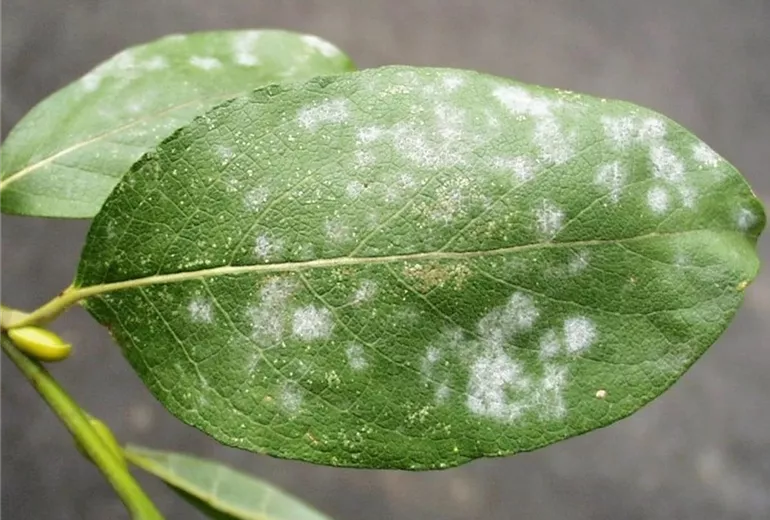Im Sommer, häufig auch erst im Spätsommer, entstehen auf den Blättern grauweiße Flecken, die sich im Laufe der Zeit über das ganze Blatt ausbreiten können.