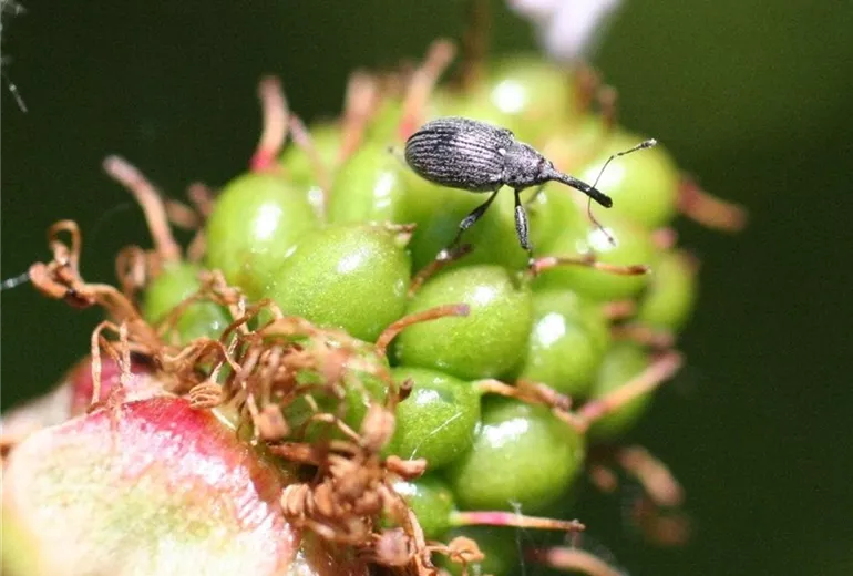 Der Schädling tritt auch an Him- und Brombeere auf.