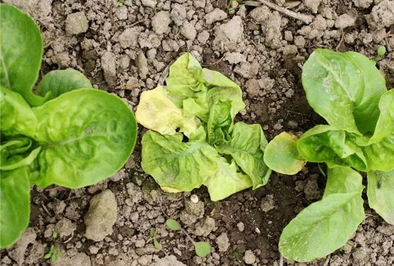 Salatjungpflanzen werden von den Erdraupen fast ganz aufgefressen, wobei die Larven die Blätter teilweise in die Erde hineinziehen. Größere Salatpflanzen beginnen plötzlich zu welken. Der Kopf bzw. die Blattrosette lässt sich problemlos vom Boden abheben, da der Wurzelhals durchgefressen ist.