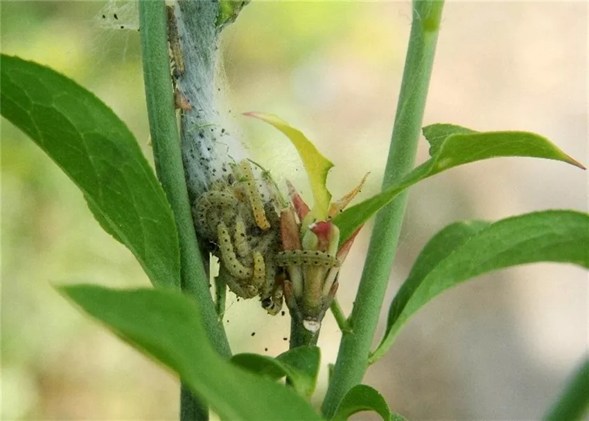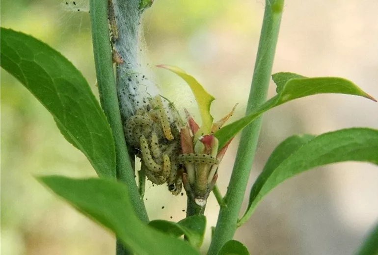 Stellt man rechtzeitig erste Gespinstbildung durch die Junglarven fest, reicht ein Entfernen der Gespinste mit der Gartenschere.