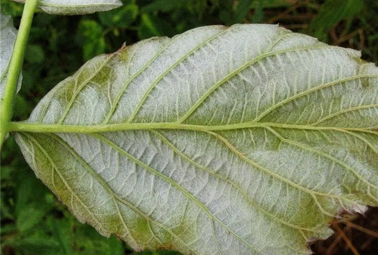 Auf der Blattoberseite entstehen kleine oder größere, unregelmäßig geformte hellgrüne bis gelbliche Flecken. Auf der Unterseite ist an diesen Stellen der üblicherweise silbrige Haarfilz grau gefärbt oder er fehlt ganz. Stärker befallene Blätter kümmern.