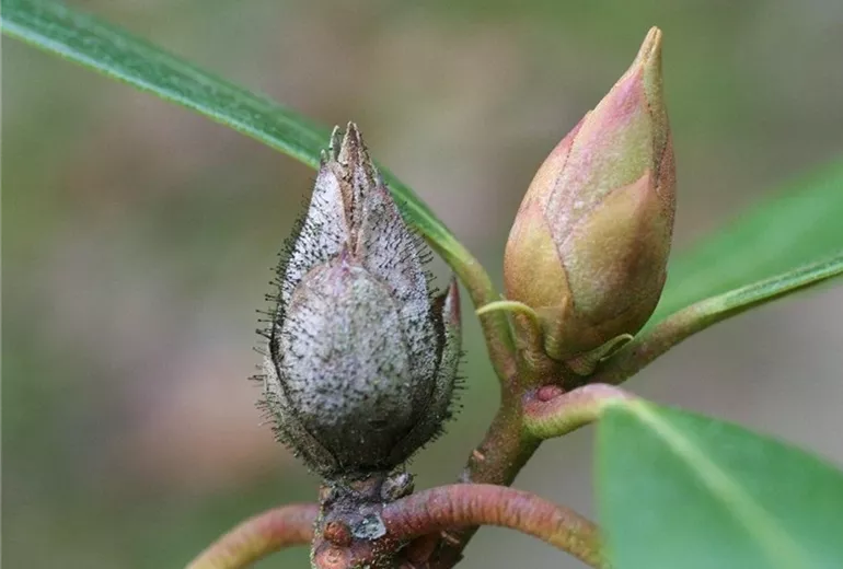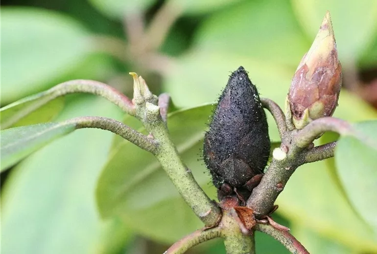 Das Knospensterben kann verschiedene Ursachen haben. Am häufigsten tritt aber ein Schadpilz (Pycnostysanus azaleae) auf, dessen Fruchtkörper man im Frühjahr in Form schwarzer Härchen erkennen kann. Es wird zwar seit vielen Jahren immer wieder behauptet, dass die Rhododendronzikade diesen Pilz überträgt, es fehlt aber immer noch der Nachweis für diese Vermutung.