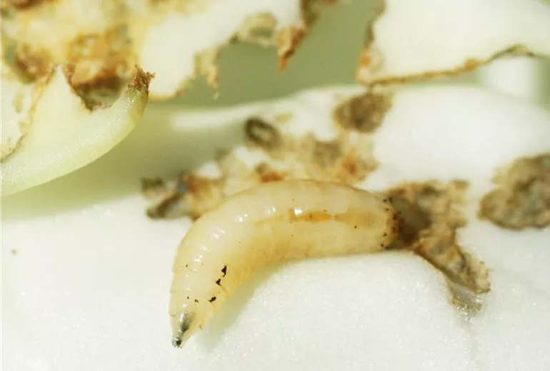 Junge Kohlpflanzen, besonders empfindlich ist Blumenkohl, entwickeln sich nicht richtig und beginnen bei starkem Befall mit der Kohlfliege zu welken. Nimmt man die Pflanzen aus der Erde, sind die Wurzeln zerfressen. Oft findet man in ihnen auch noch die cremefarbenen Larven der Kohlfliege.