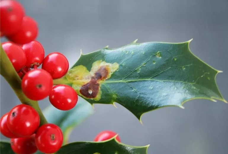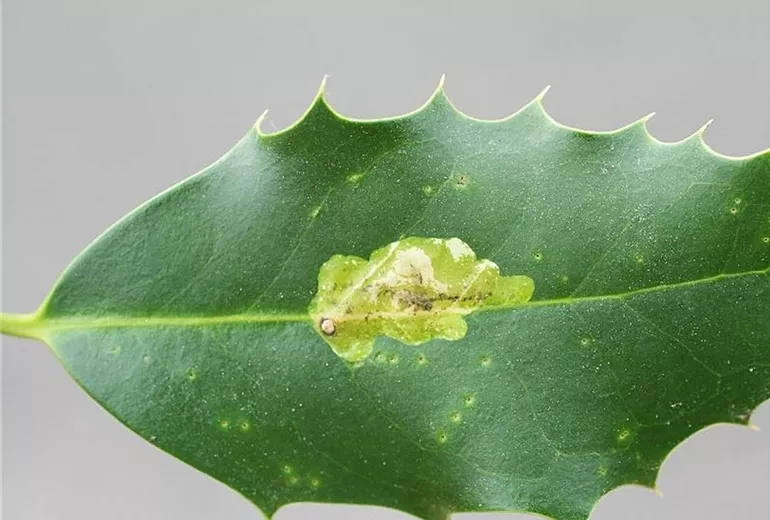 Der Befall der immergrünen Ziersträucher ist zwar hässlich, bedeutet aber keine ernsthafte Gefährdung für die Stechpalme.
