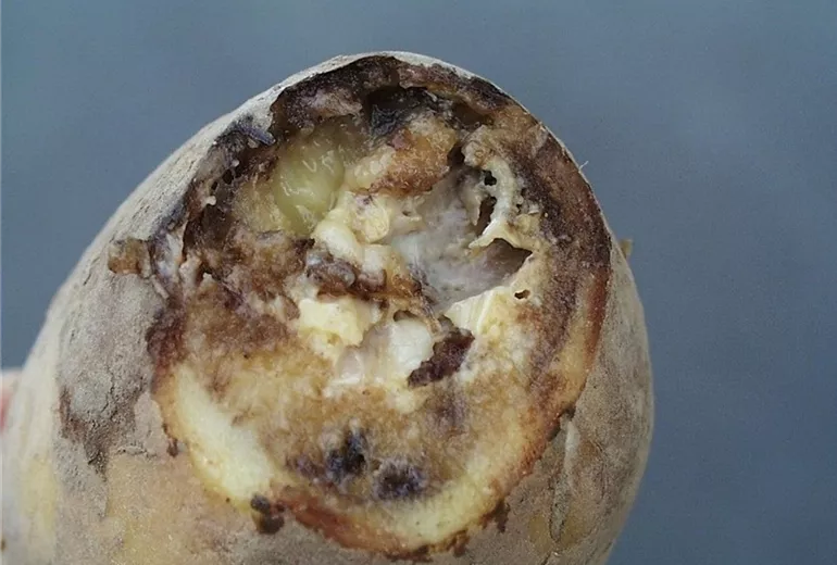 Feuchte Witterungsbedingungen fördern den Befall der Knollen mit bakteriellen und pilzlichen Fäuleerregern.