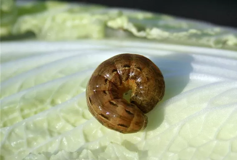 Einige der an Kohl vorkommenden Raupen bohren sich tief in die Köpfe von Rot Weiß oder Chinakohl oder die Blume von Brokkoli und Blumenkohl ein.