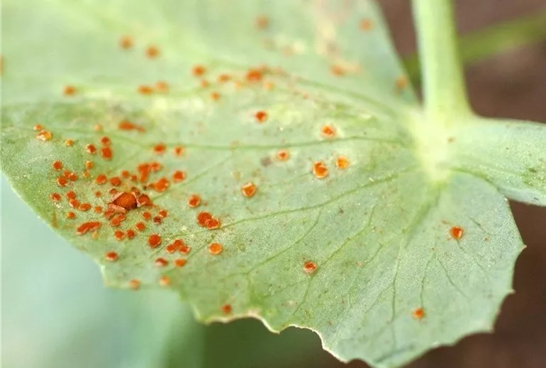 Im Spätsommer findet man auf den Blattunterseiten von Erbsen rot bis dunkelbraune, stäubende Pusteln, die aus der unteren Blatthaut hervorbrechen.