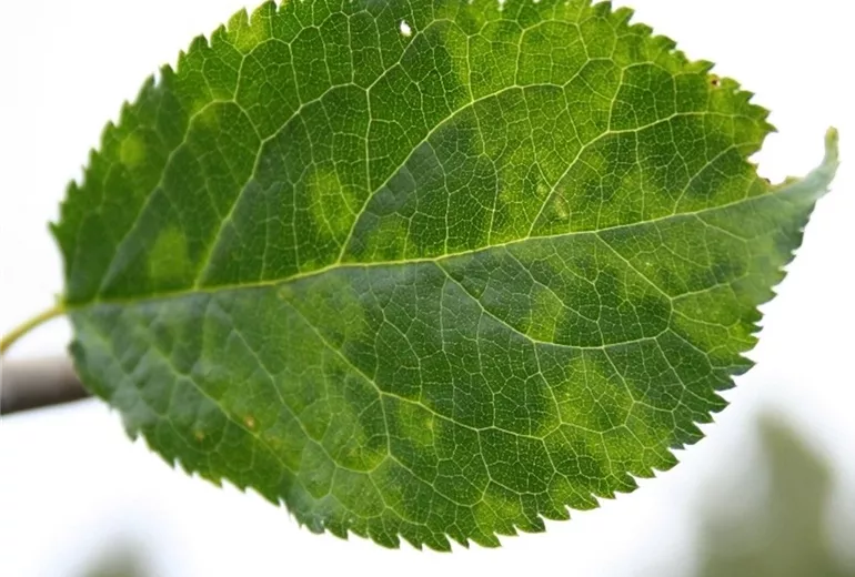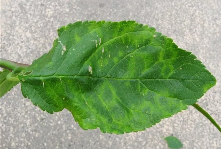 Die Scharkakrankheit ist normalerweise schlecht zu erkennen. Im Juli/August zeigen die Blätter wolkenartige oder ringförmige, verwaschene Aufhellungen. Insgesamt ist das Wachstum befallener Bäume gebremst.