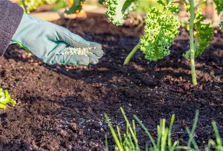 Dabei ändert sich der Nährstoffgehalt im Boden ständig. Vor allem durch die Pflanzen selbst. Zum Glück haben jedoch nicht alle Pflanzen den gleichen Nährstoffbedarf. Es gibt sogar Pflanzen, die dem Boden Stoffe zuführen, die andere wiederum zum Wachstum benötigen. So kommt es, dass zum Beispiel in der Landwirtschaft durch wechselnde Kulturen der Nährstoffverlust im Boden ausgeglichen werden kann, das kannst du durch Gründüngung auch im Nutzgarten umsetzen. Im Ziergarten jedoch sollen manche Pflanzen viele Jahre am gleichen Ort stehen bleiben. Genau das ist der Grund, warum wir immer wieder durch Düngung Nährstoffe in den Boden einbringen müssen.