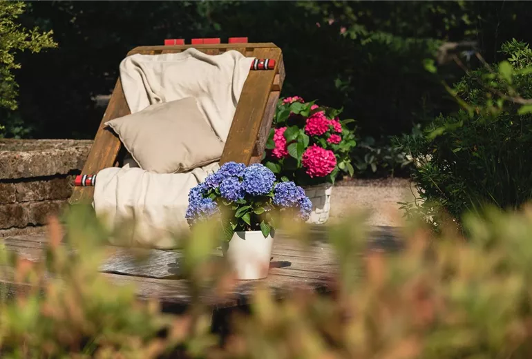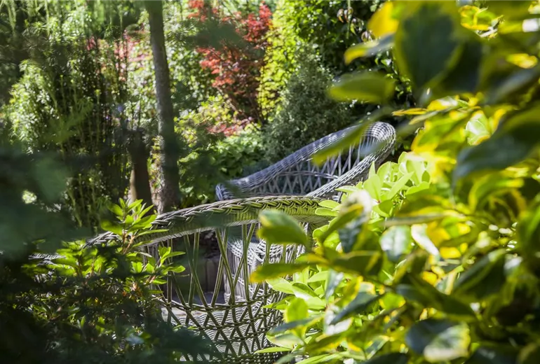 Beim Thema Sitzplatz denken die meisten als erstes an eine großzügige Terrasse, die direkt am Haus und am besten in südlicher Ausrichtung liegt. Aber warum soll das schon alles sein? Erst durch verschiedene Sitzmöglichkeiten und damit variierenden Blickwinkeln erlebt man den Garten viel intensiver. Außerdem kann man so auf unterschiedliche Bedürfnisse und die jahreszeitlichen Veränderungen eingehen. Bei Höchsttemperaturen im Sommer wünscht man sich beispielsweise eher ein schattiges Plätzchen, während man im Frühling und Herbst jeden Sonnenstrahl aufsaugen will. Denke also ruhig weiter als nur bis zur Terrasse. Wie wäre es zum Beispiel mit einem einfachen Klappstuhl und einem Bistrotisch, die schnell mal ans duftende Beet gerückt werden? Oder eine Hängematte, die im lichten Schatten zweier Bäume zum Träumen einlädt? Leichte Möbel, die problemlos zu transportieren sind, geben dir dabei Flexibilität.