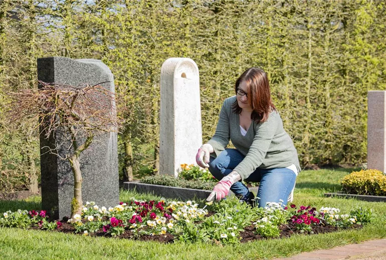 Mehr erfahren Im Mai bekommt das Grab seine Sommerbepflanzung