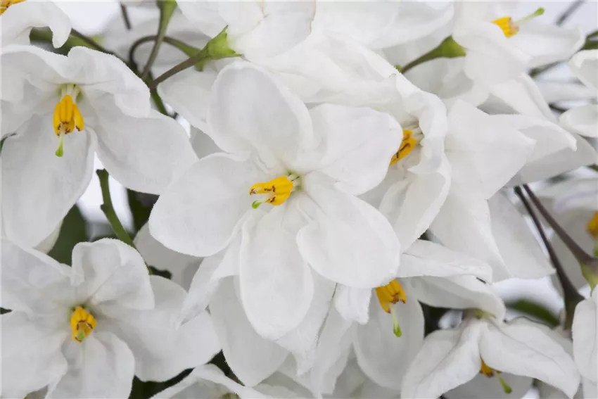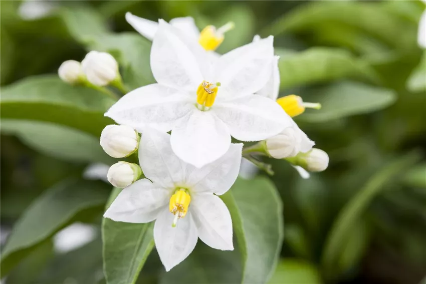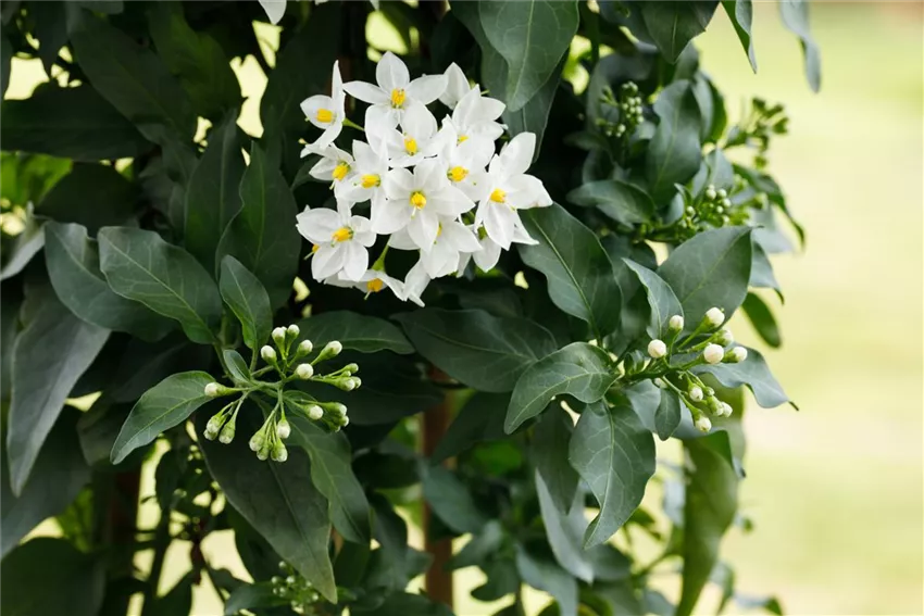 Dass der Sommerjasmin zu den Nachtschattengewächsen gehört ist in Anbetracht der wunderschönen Blüten der Pflanze absolut unverständlich. Die weißen Blüten haben nichts mit einem Nachtschatten gemeinsam.