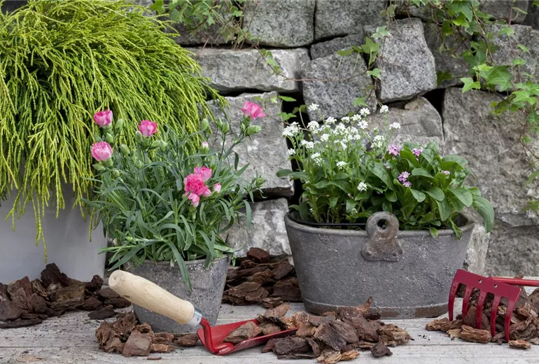 Ein einfacher Lattenzaun wird schon belebt, wenn man ihn beispielsweise mit Sonnenblumen, Wildrosen oder Mönchspfeffer unterpflanzt. Nun noch ein paar Zaunhocker aus Metall oder Keramik daraufgesetzt, und schon schaut man statt auf einen schlichten Zaun auf eine liebevolle, ansprechende Gartenkonstruktion. Hat man Holzbalken im Querformat, wirken Vergissmeinnicht in Verbindung mit Tulpen wahre Wunder. Scheue nicht davor zurück, bei solchen Arrangements auch einmal zu Weiß zu greifen. Anemonen und Narzissen in Weiß erzeugen eine klare, freundliche Atmosphäre und können mit vielen Farben zusammenspielen. Eine Ziegelsteinmauer in warmen Tönen lässt keinen Wunsch offen. Ob man hier Ton in Ton mit zarten Farben arbeitet oder temperamentvolle Kontraste in kräftigem Blau oder sattem Gelb setzt, bleibt dem Stil und Geschmack des kreativen Gartenbesitzers überlassen. Traumhaft vor jeder Art von Zaun sind die zarten, aber auffälligen Astilben. Ruhig in Massen und verschiedenen Farben pflanzen!