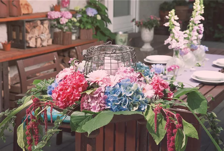 Blatt ist nicht gleich Blatt. Unterschiedliche Grüntöne, variantenreiche Formen von groß bis feingliedrig: Für jede Blüte ist das Passende dabei, das ihre Wirkung untermalt. Die Kombination verschiedener Blätter macht ein Arrangement besonders reizvoll. Sträucher oder Staudenbeete können hier Unverzichtbares liefern. Achte beim Schnitt in deinen Blumenbeeten darauf, dass die Blätter bereits voll entwickelt sind. Frisch Ausgetriebenes hält sich in der Vase nicht! Im Sommer haben z.B. die Blätter von Funkien, Elfenblumen oder Bergenien eine lederartige Struktur, die für eine lange Haltbarkeit in der Vase sorgt. Schneide immer nur so viel ab, wie du benötigst. Kräuter wie Rosmarin oder Lavendel brauchen vor der kalten, winterlichen Jahreszeit ein üppiges Blattkleid: Schneide deshalb ab September nicht mehr, denn die duftenden Zweige sind der natürliche Winterschutz der beliebten Pflanzen.