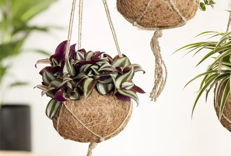 Ebenfalls eine gute „Anfänger-Pflanze“ ist die Dreimasterblume. Diese steht gern hell und warm, mag aber die direkte Sonne nicht so gern. Sie rankt sehr schön nach unten, was sie als Ampelpflanze prädestiniert.