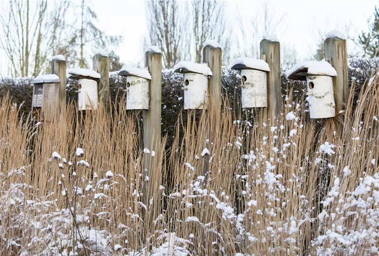 Sehr hübsch sehen halbierte Kokosnussschalen aus. In die Schalen oben und unten jeweils ein Loch bohren und dadurch ein Kokos-Seil schieben. Wenn das Seil an beiden Enden genügend aus der Schale herausragt, wird nicht unbedingt noch ein Holzstab zum Sitzen für die Vögel benötigt. Ebenfalls sehr hübsch sieht es aus, wenn etwas größere Plätzchen-Ausstechformen mit dem Fettfutter befüllt werden. Dazu in die Ausstechform ein dekoratives Textilband binden und die Form anschließend auf Back- oder Alufolie legen. Danach das noch warme Fettfutter einfüllen und glattstreichen. Anstelle der Kokos-Schalen oder Ausstechformen sehen auch Blumentöpfe aus Ton sehr hübsch aus. Hierfür sind ein Kokos-Seil oder ein breites Textilband als Aufhängung und ein Holzstab oder Ast als Sitzgelegenheit für die Piepmätze optimal.