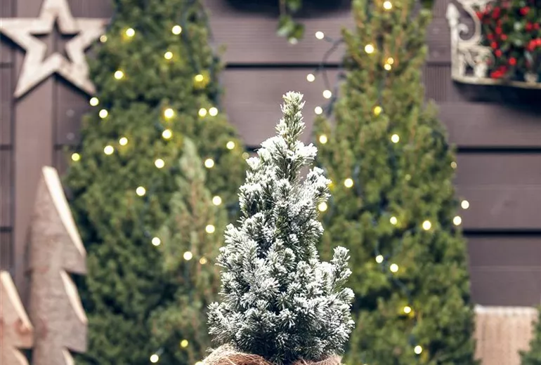 Wunderschön anzusehen ist die Blaufichte. Als Form hat sie sich die Pyramide ausgesucht und als Farbe ein herrliches Blau, das im Schein der Weihnachtskerzen silbrig schimmert. Wer sich anstelle einer Tanne für eine Fichte als Weihnachtsbaum entscheidet, wird sich an diesem Schmuckstück erfreuen. Die kräftigen Äste sind wie geschaffen für Holzfiguren und Wachskerzen. Zudem strömen sie diesen wunderbaren erdigen Duft nach Wald aus. Wer sich eine Fichte als Weihnachtsbaum holt, sollte unbedingt Handschuhe mitnehmen, denn sie hat spitze Nadeln.