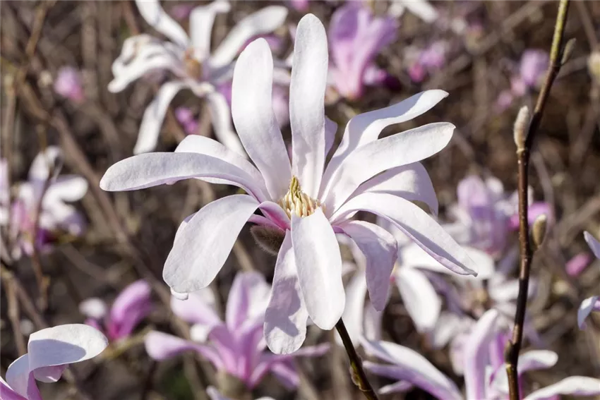 Die Magnolie ist etwas ganz Besonderes. Sie kann sich vom kleinen Strauch bis zum großen Baum entwickeln und hat eine sehr lange Geschichte hinter sich. Die Magnolie gibt es seit mehr als 100 Millionen Jahren. Das macht sie zur ältesten Blühpflanze der Welt. Schon vor der Eiszeit war die Magnolie in Mitteleuropa heimisch. Bemerkenswert ist auch, dass sich aus der Magnolie alle anderen heute bekannten Laubgehölze entwickelt haben. Hierzulande sind Magnolien so beliebt, weil sie schon früh Farbe in den Garten bringen. Mit über 80 Arten ist für jeden Geschmack eine Magnolie dabei. Den Anfang macht die Stern-Magnolie an März mit ihren Blüten. Bis in den Sommer hinein blühen dann die unterschiedlichsten Magnolien.